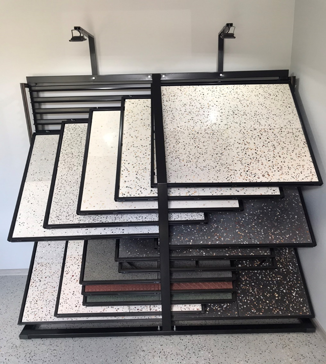 Увидеть вживую и оценить дизайн и качество, возможно в нашем офисе или при встрече с представителем в любое удобное время. Мы с нуля воспроизвели технологию производства терраццо и внесли собственные корректировки в технологический процесс, что привело к более привлекательному виду продукции, повысило прочностные характеристики и срок службы изделий.