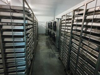 - Камеры для сушки — 6 шт., укомплектованные тележками с сетками (120 шт.), вместимость каждой камеры — 2000 кг, всего — 12000 кг