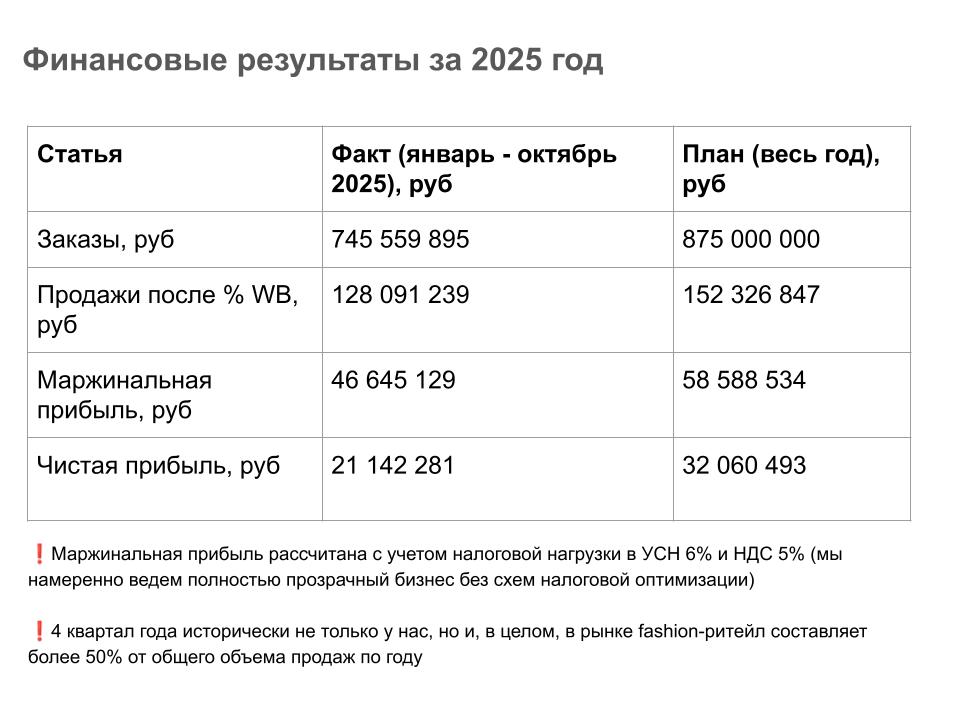 * В fashion-ритейле 4-й квартал исторически даёт до 50%+ годового объёма продаж, что заложено в годовой план.