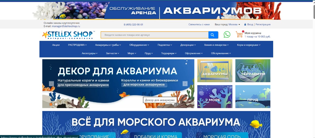 Интернет-магазин аквариумных товаров и товаров для террариумов и прудов