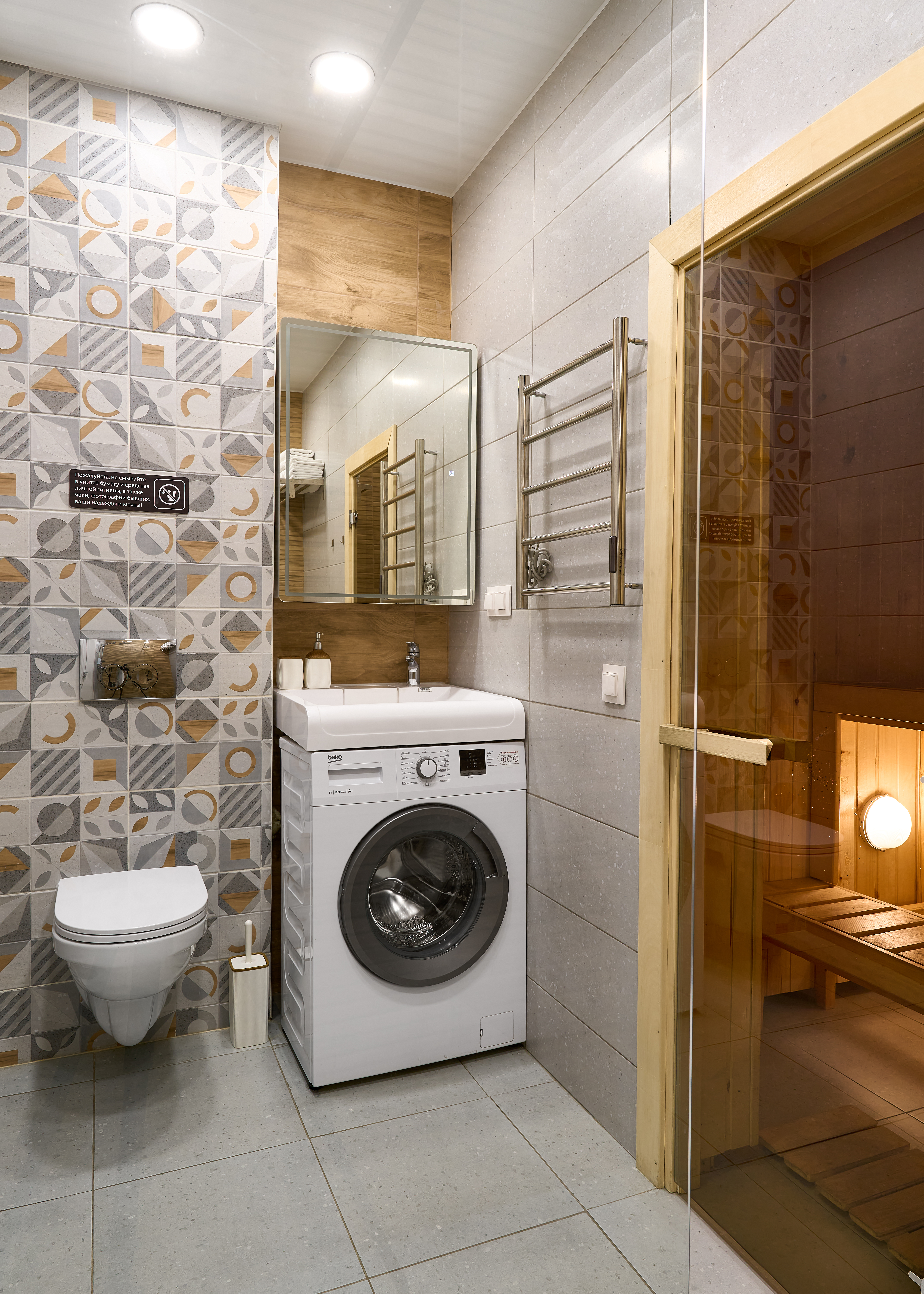 Помещение персонала - оборудованная кухня-гостинная, с/у, помещение прачечной с двумя стирально-сушильными машинами и парогенератором.