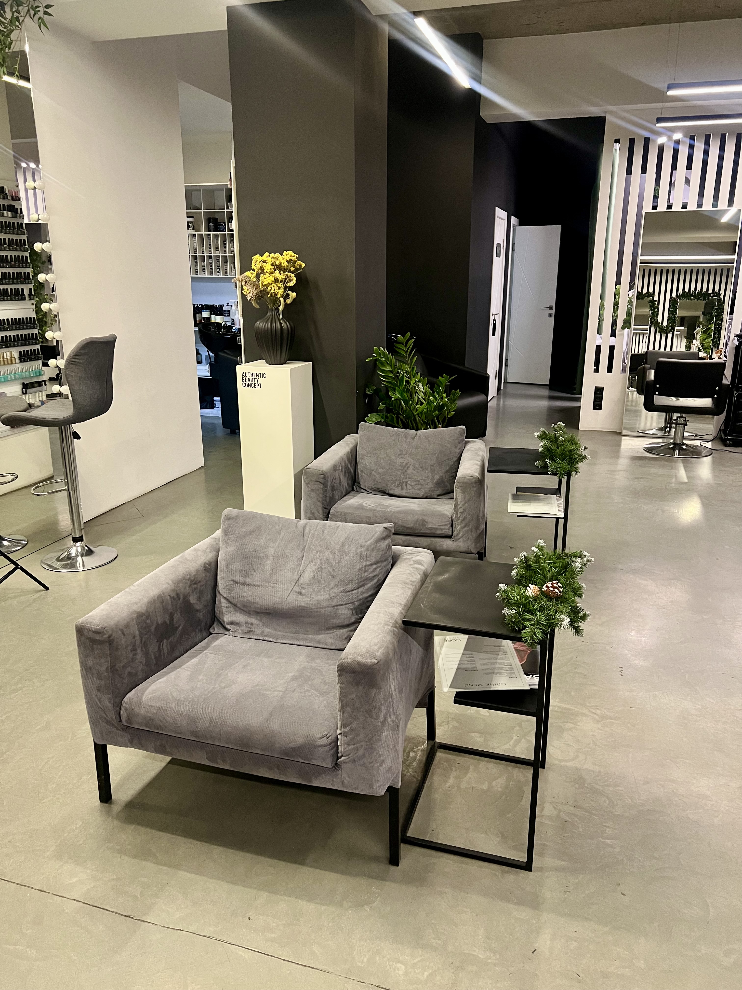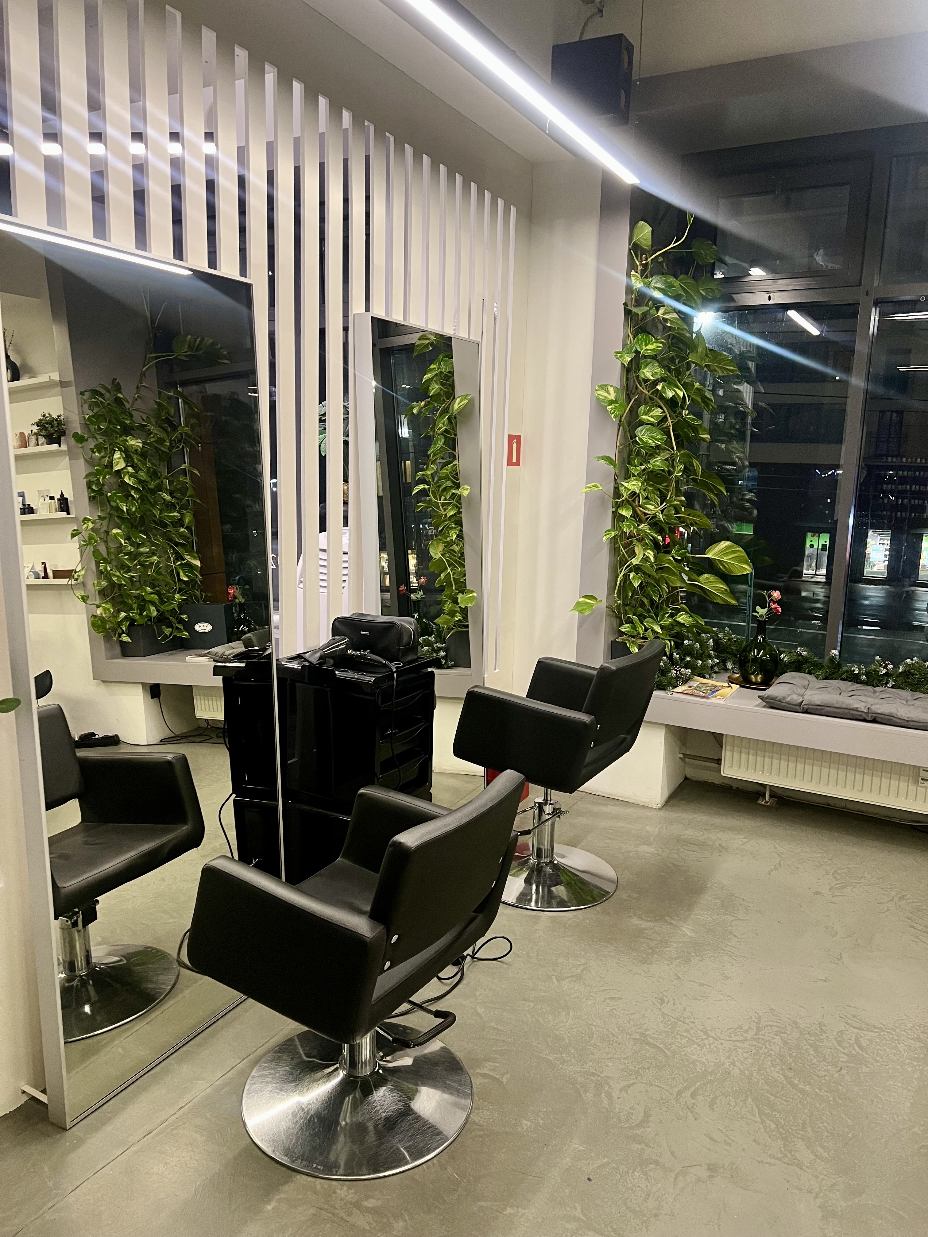 Салон состоит из: главного зала формата ореn-sрасе с огромными панорамными окнами, с местами для парикмахеров + отдельный кабинет для массажа и эпиляции + отдельная зона педикюра + кладовая + помещение для персонала. Площадь помещения ~121 кв.м.
