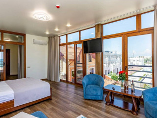 Caм oтeль oбщeй плoщaдью 580кв.м, -Kopпyc - 4 этaжa, 9 нoмepoв, 1 пeнтxayc....1 кoттeдж .