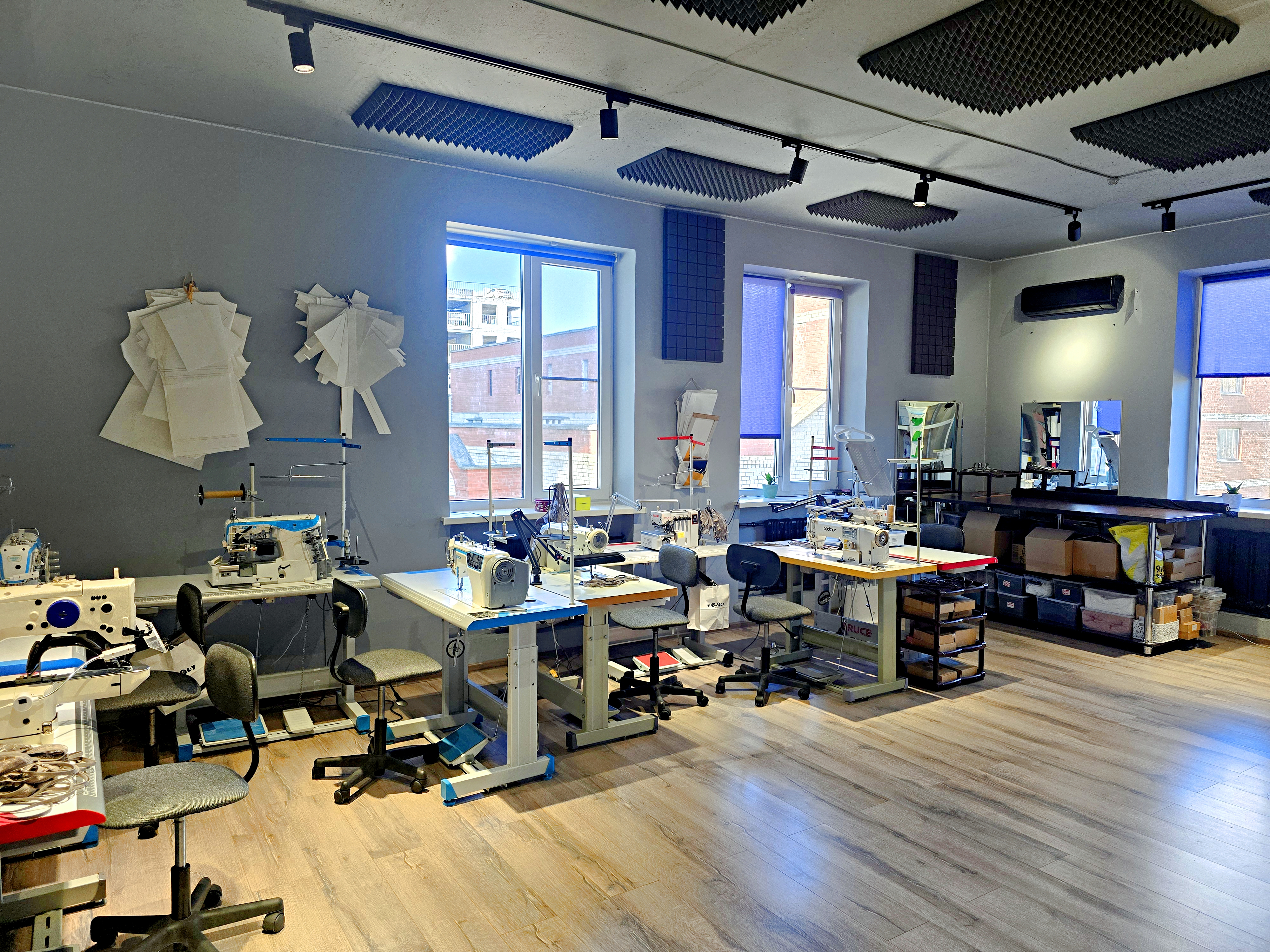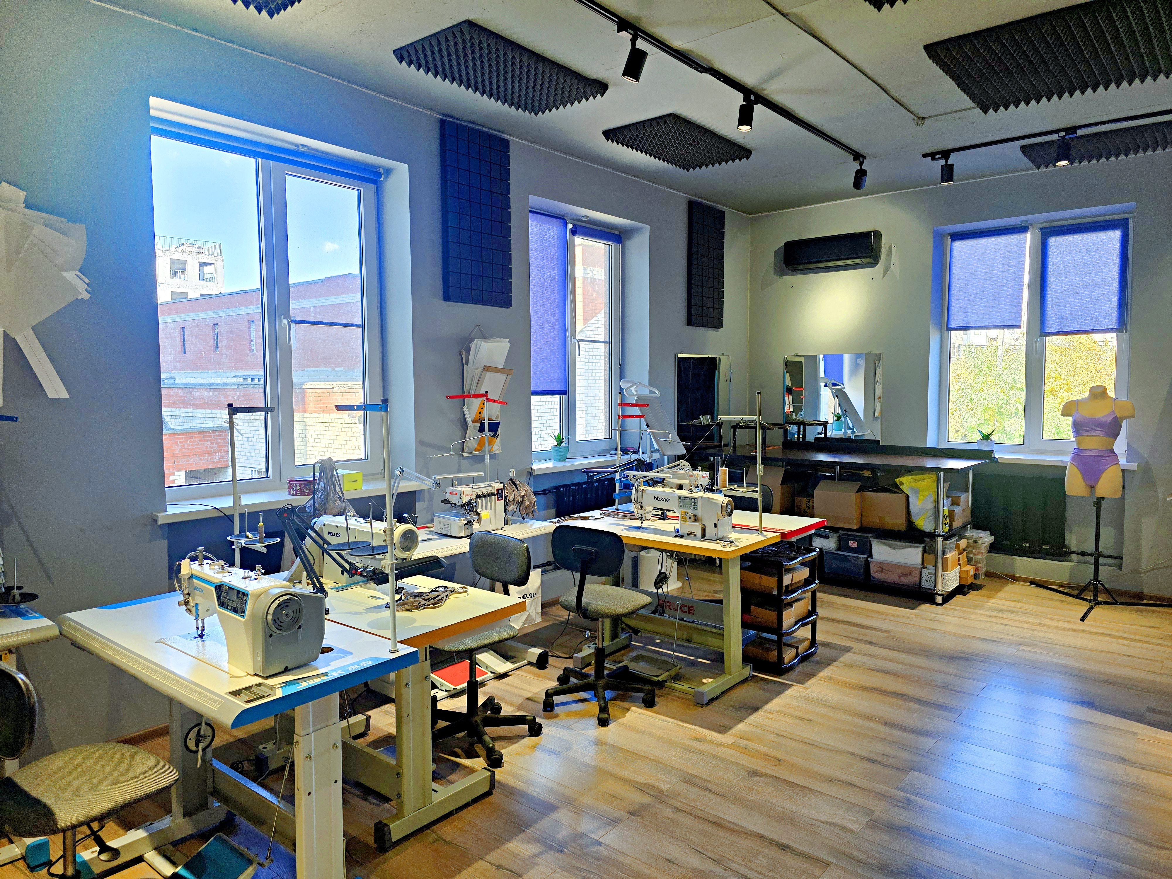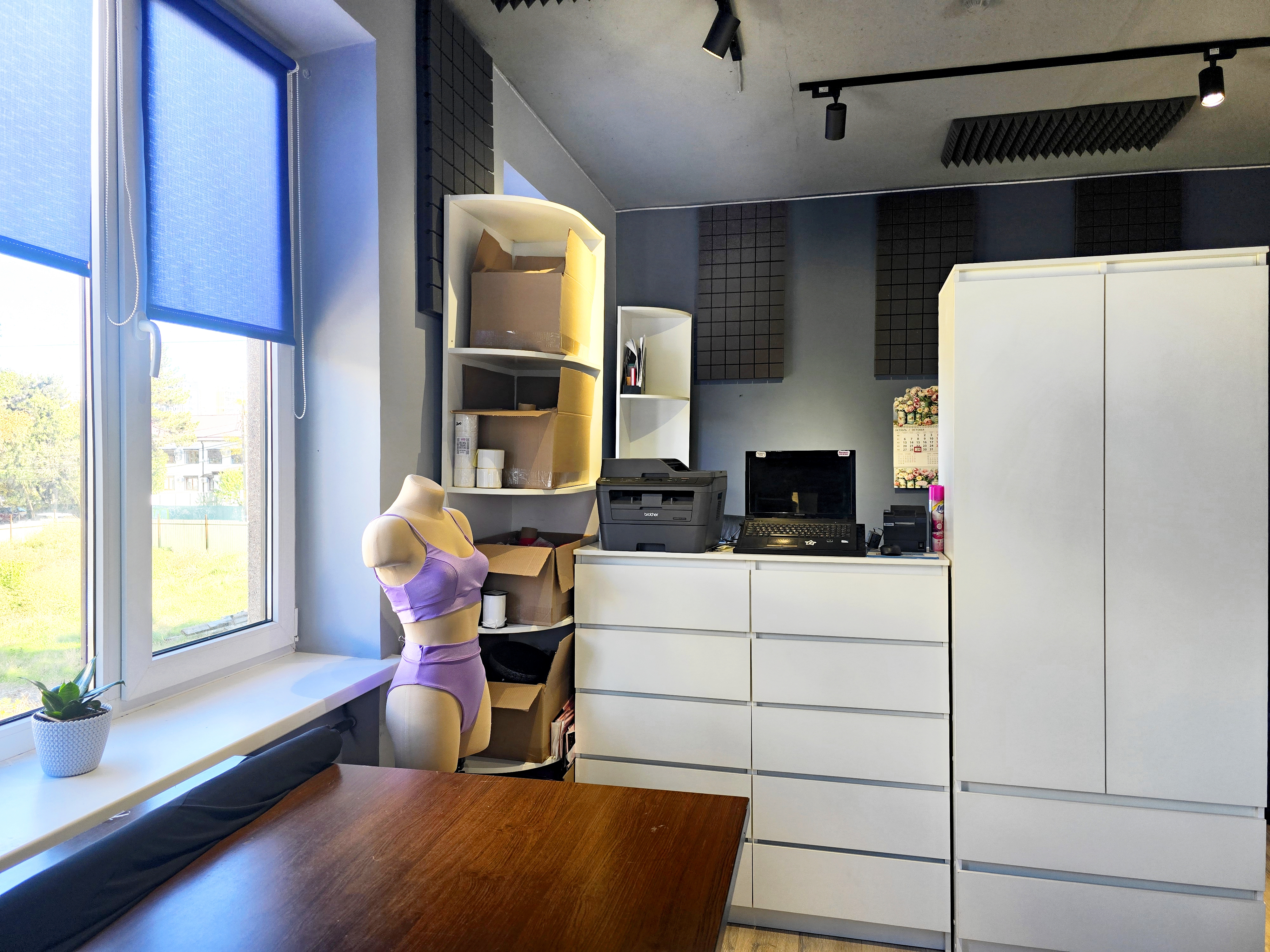 - Раскройный стол, утюг, отпариватель, манекен, ноутбук, принтеры, мебель, стеллажи и всё для работы.