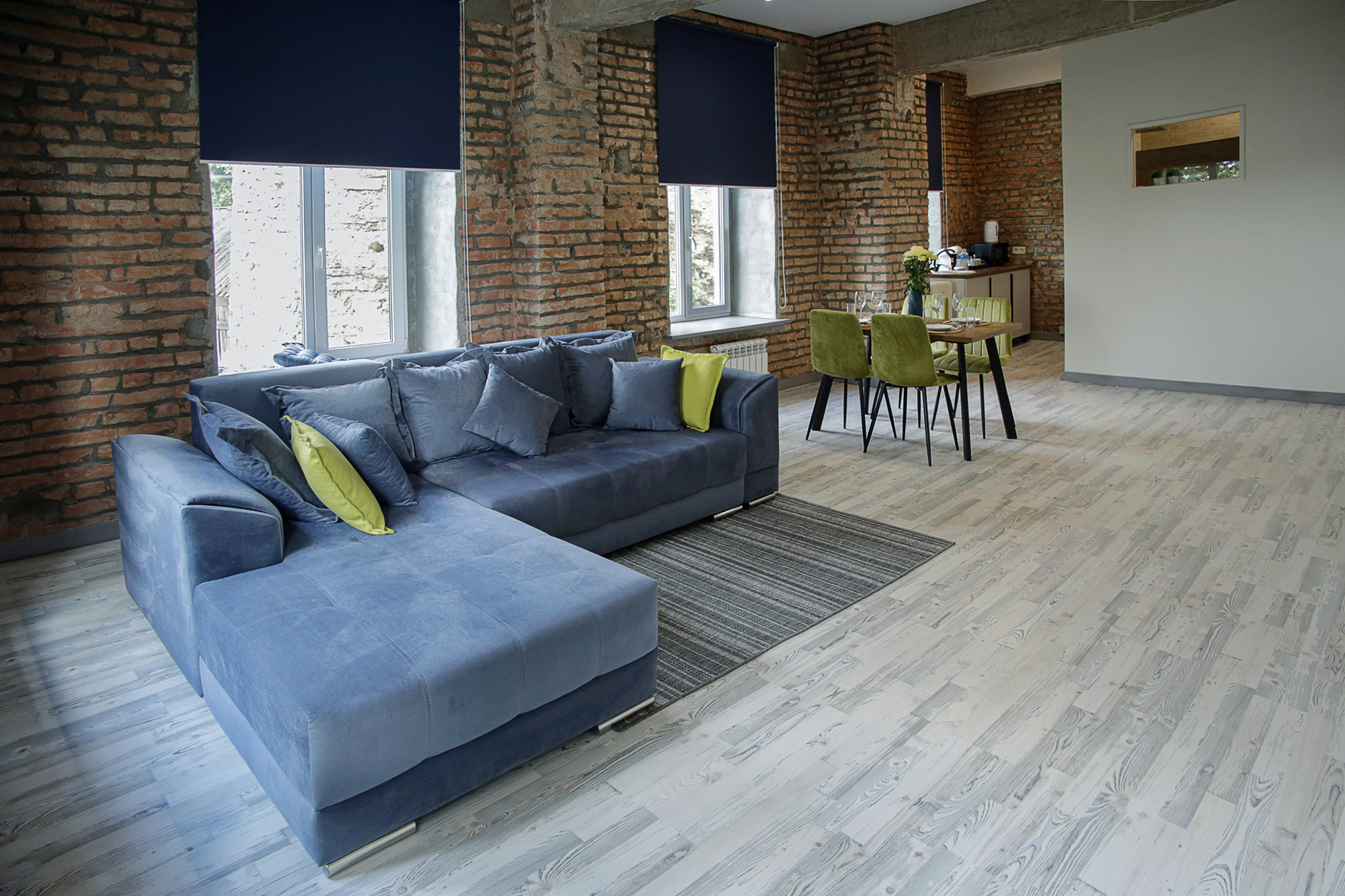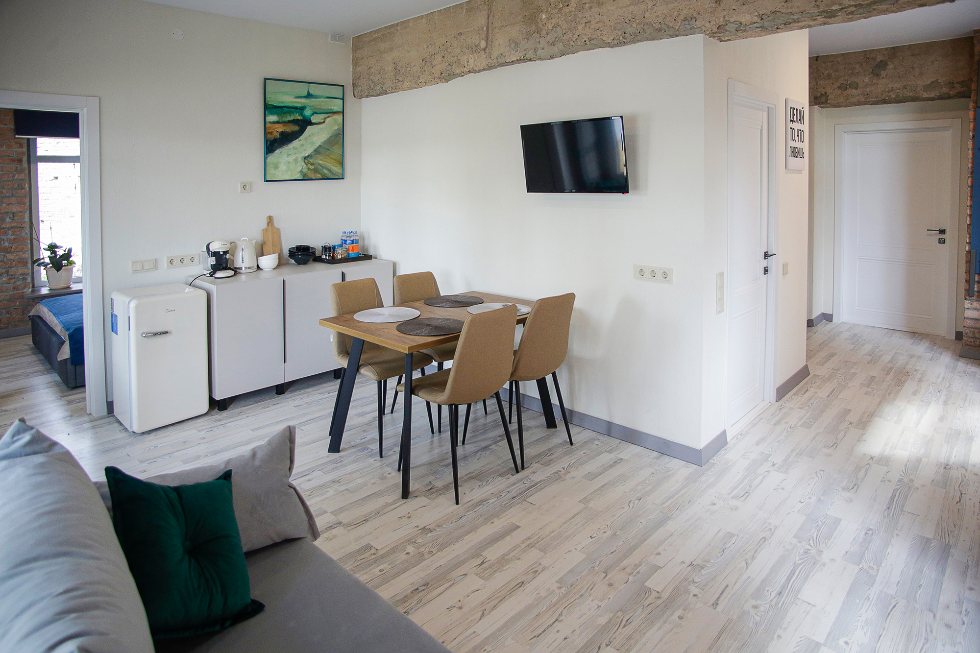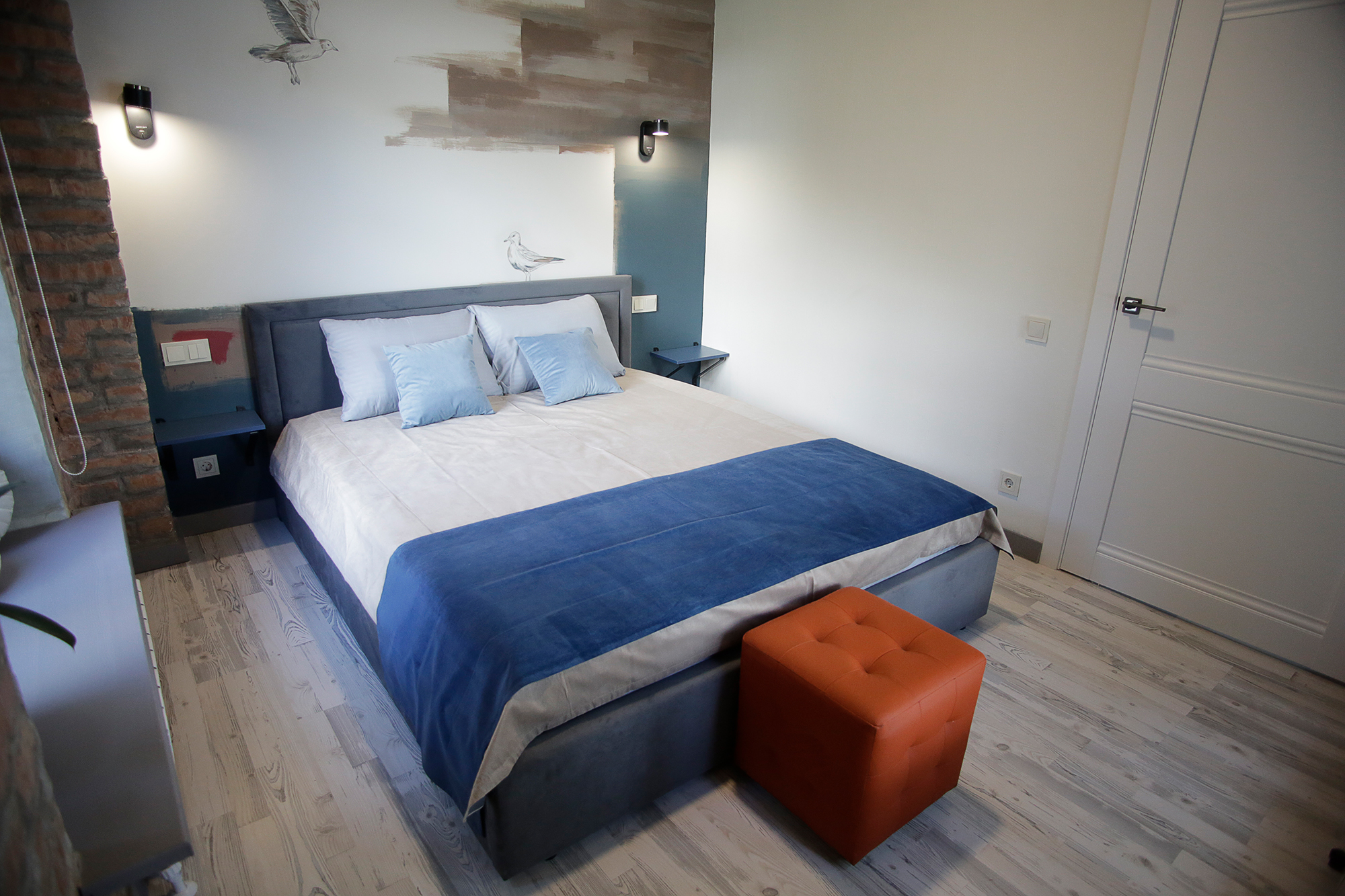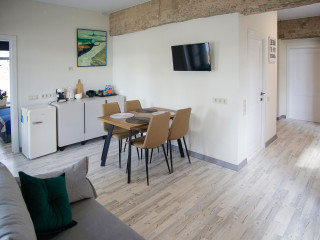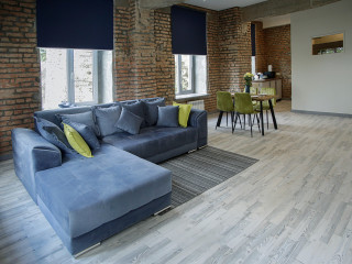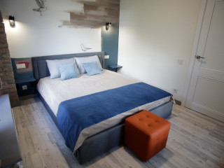 Номерной фонд: 8просторных семейных номеров площадью от 30 кв.м. до 75 кв.м каждый, разделённых на две-три комнаты. Все номера оборудованы комфортными большими с/у, имеют стильный дизайн. Абсолютно все номера видовые, красивейшие виды на реку Великая.