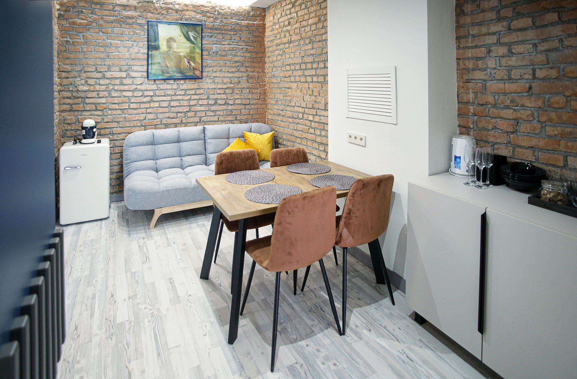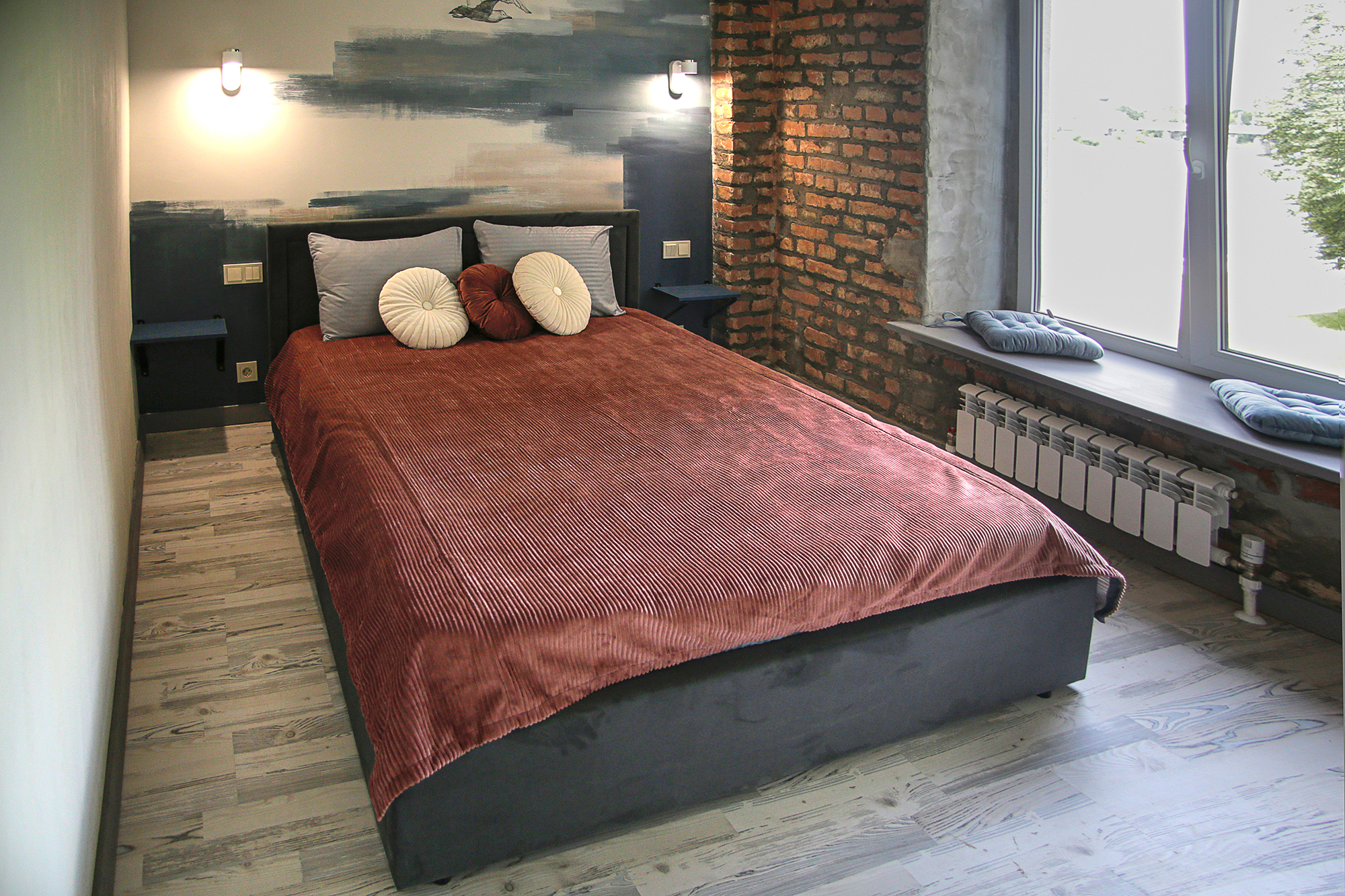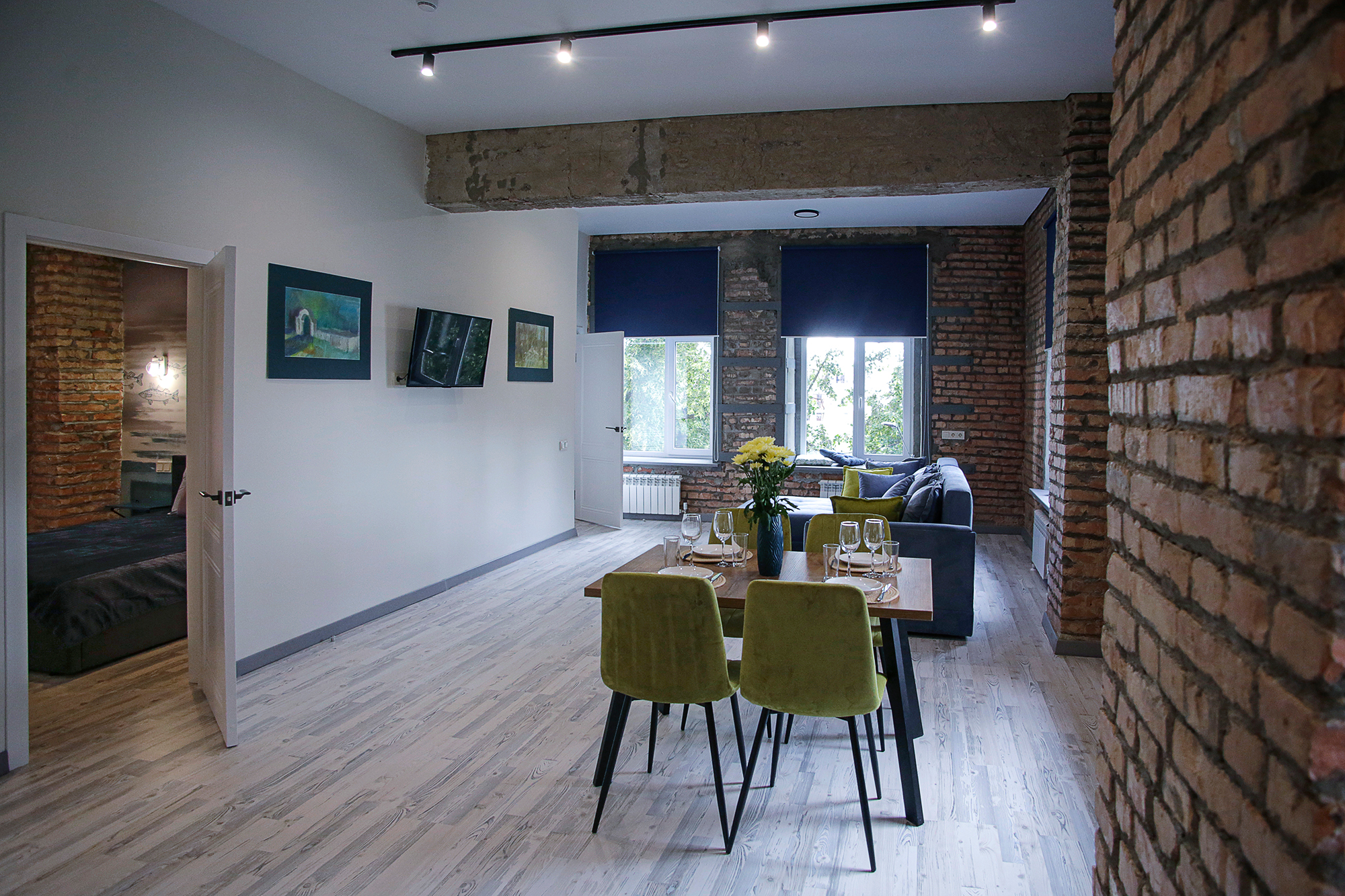 Номерной фонд: 8просторных семейных номеров площадью от 30 кв.м. до 75 кв.м каждый, разделённых на две-три комнаты. Все номера оборудованы комфортными большими с/у, имеют стильный дизайн. Абсолютно все номера видовые, красивейшие виды на реку Великая.
