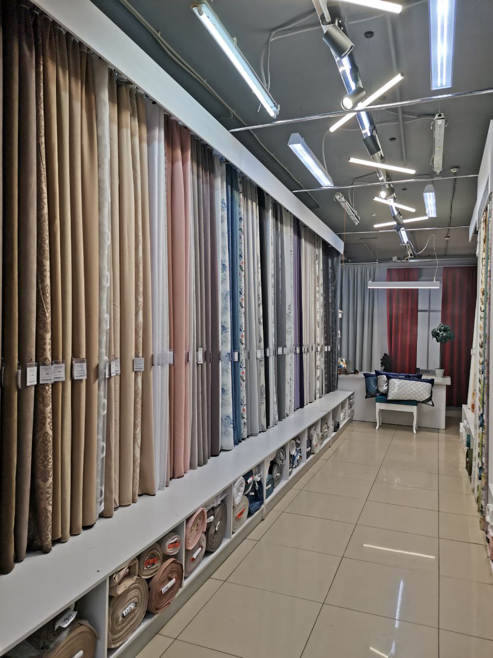 Салон штор -это не только ткани, но и услуги пошива, а также огромный рынок изготовления штор для юридических лиц (садиков, школ, санаториев, ресторанов, гостиниц и тд).