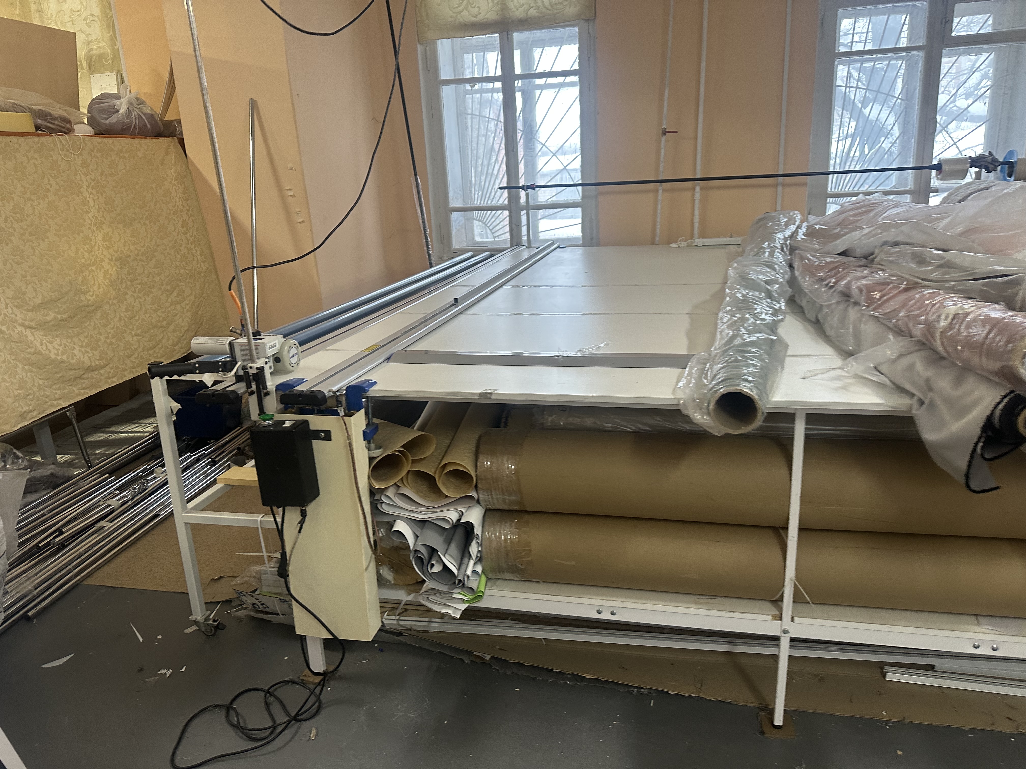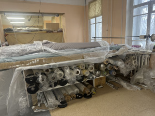 Также продаю производство рулонных штор с раскройным стором (отрезная линейка полуавтоматического типа) 550 тр +остатки тканей и фурнитуры для производства рулонных штор.