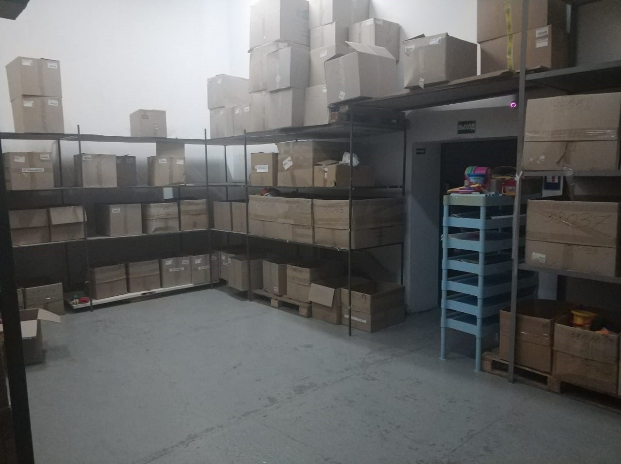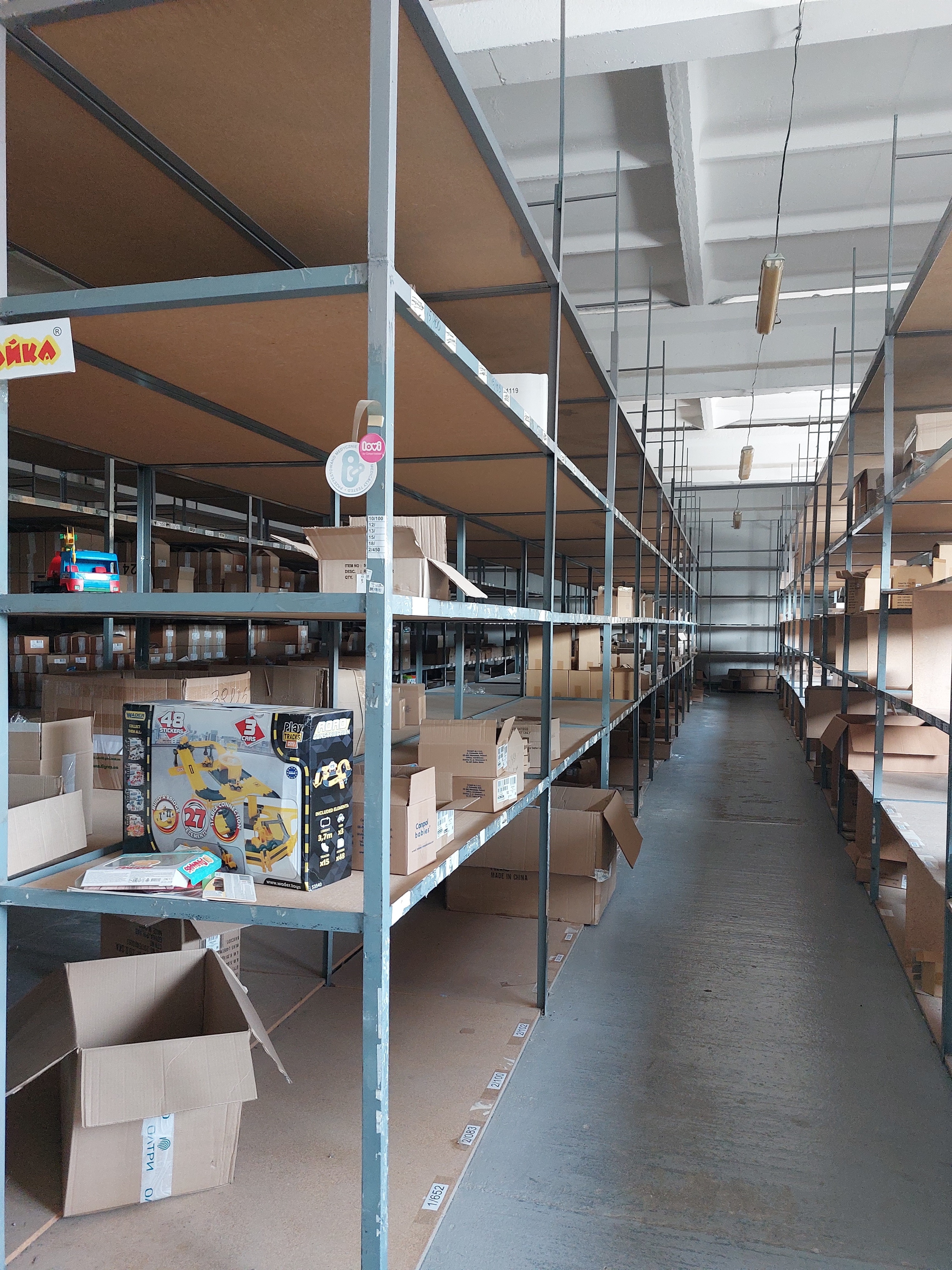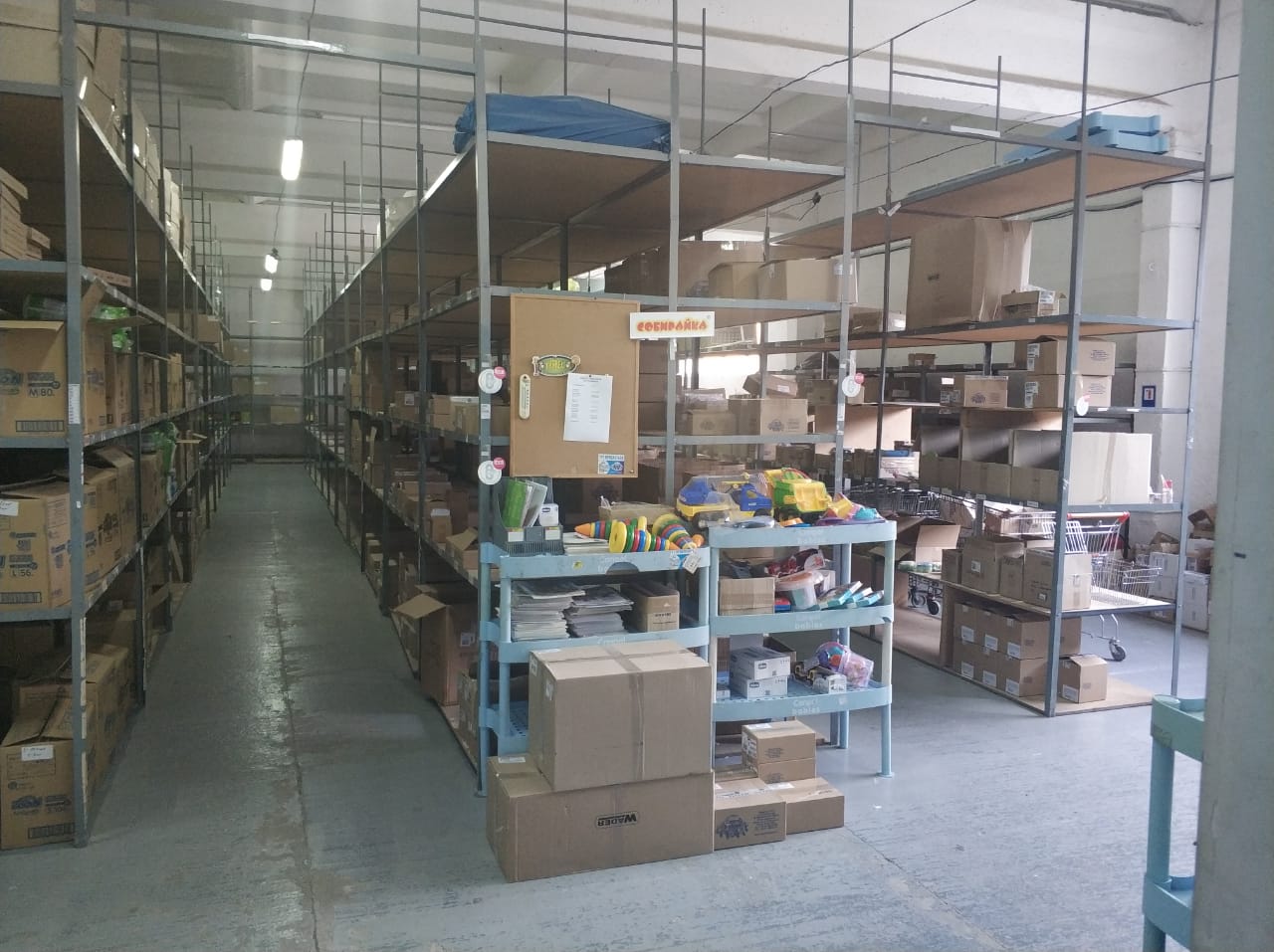 Отдельно стоящий склад-офис 700,0 кв.м. со стеллажами для хранения товаров.