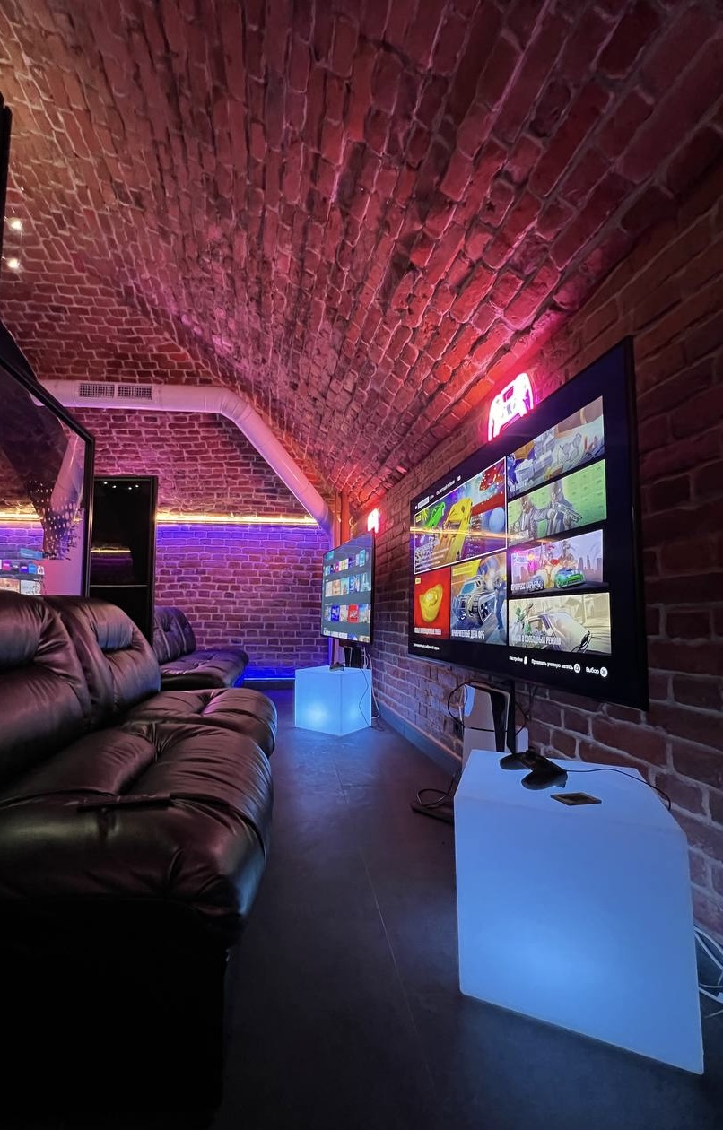 Помещение (~90м2), выполнен дизайнерский ремонт с грамотным зонированием: клуб разделен на 2 этажа. Так, гости в лаунж-зоне не мешают тем, кто находится в компьютерной зоне и наоборот.
