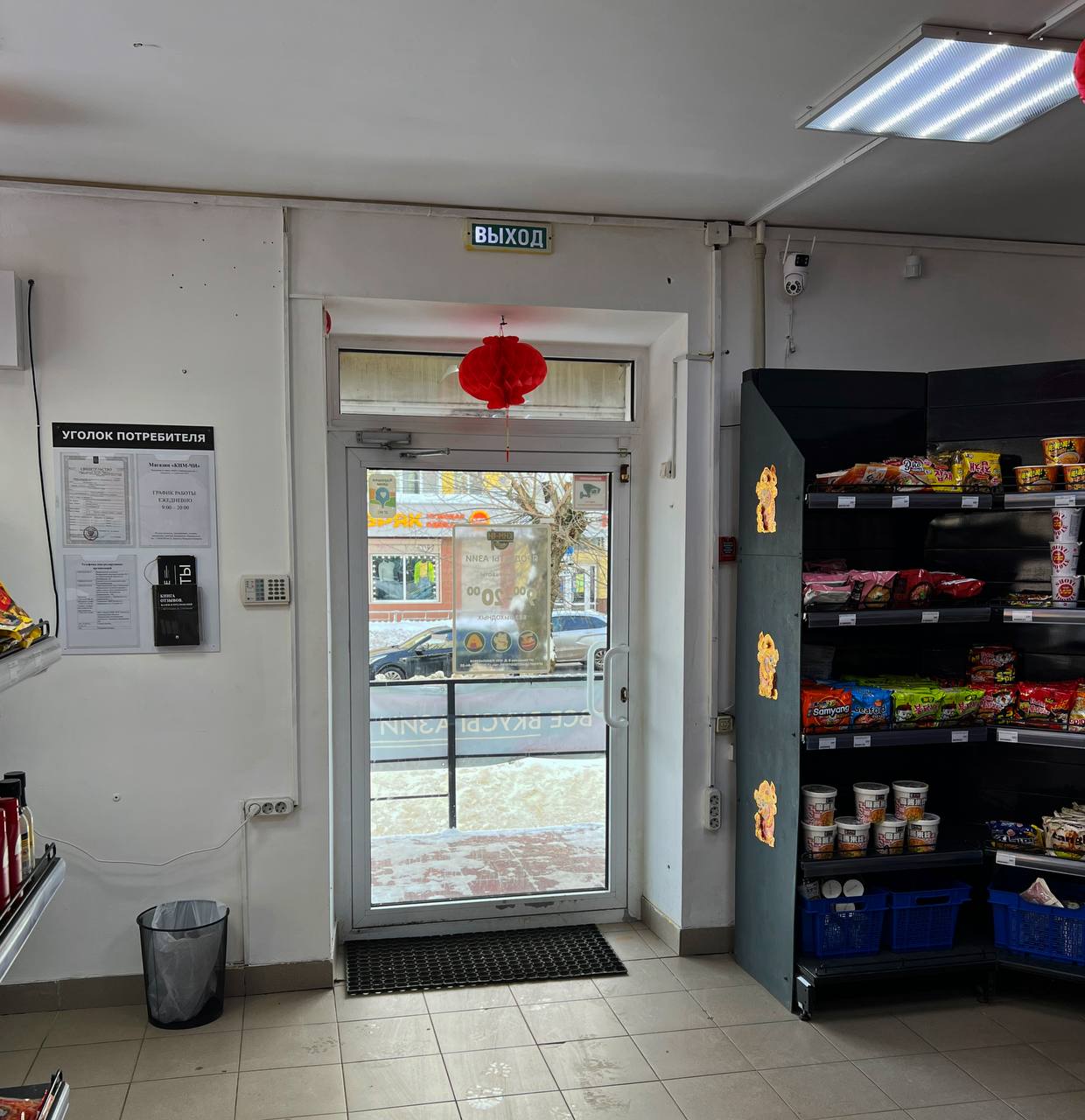 - Все необходимое торговое оборудование (стеллажи, холодильник, морозильный ларь, кассовая зона, интерьерные детали);