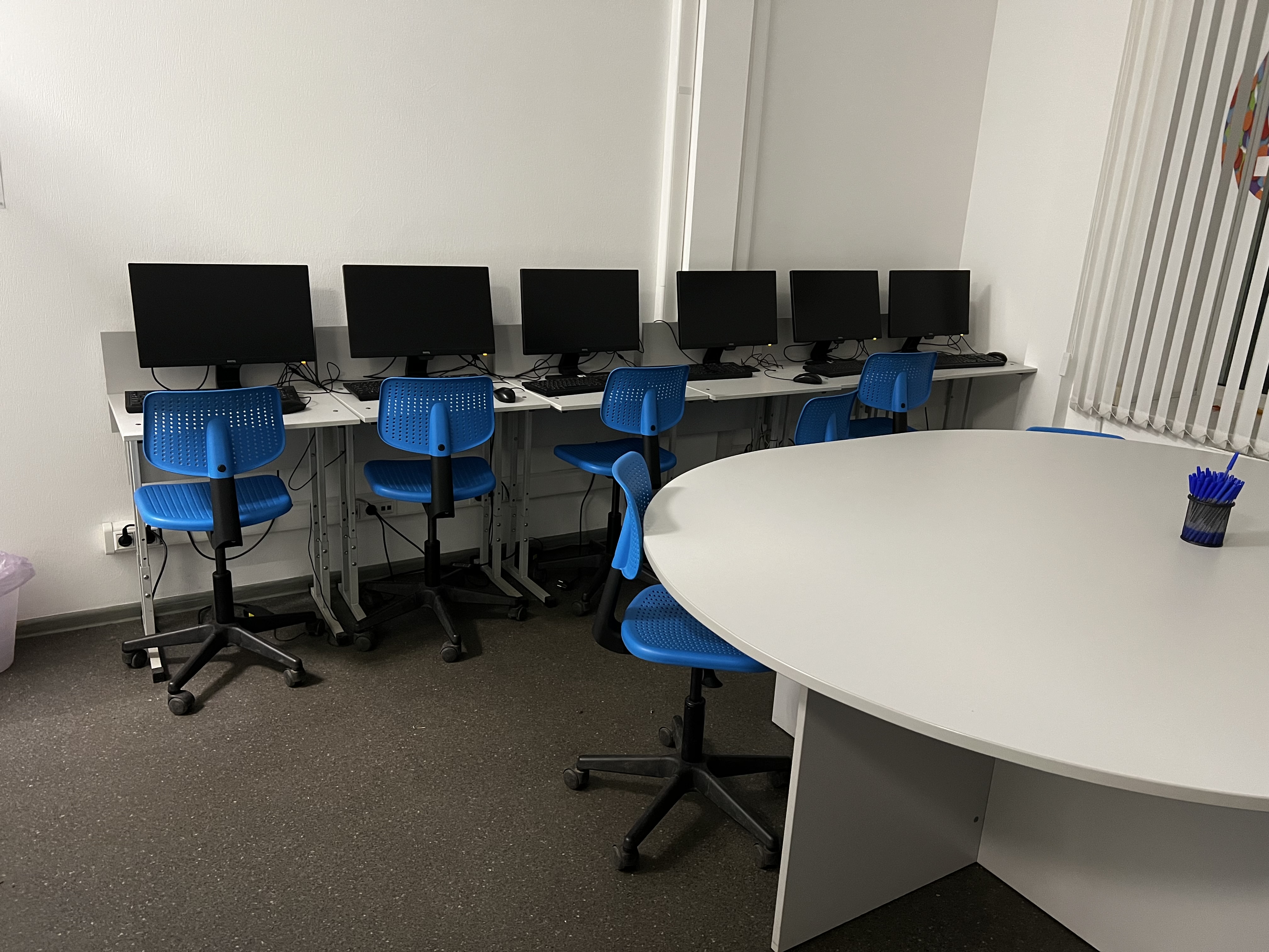 - 6 аудиторий (одна из них оборудованный компьютерный класс на 11 человек)