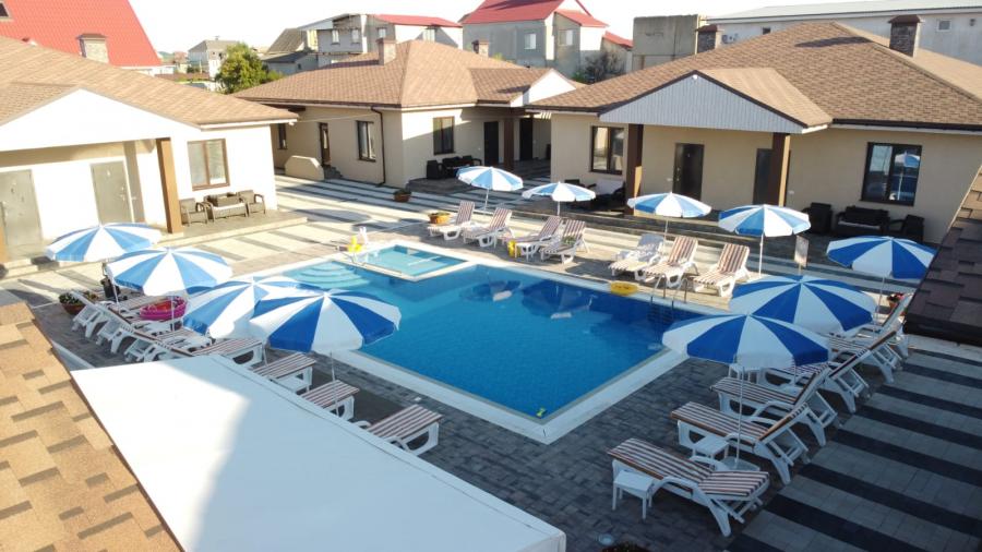 На территории 5 домов ( 150 кв.м) в каждом доме 2 апартамента( 75 кв.м) с отдельными входами. Вместимость одного апартамента 6-7 человек.