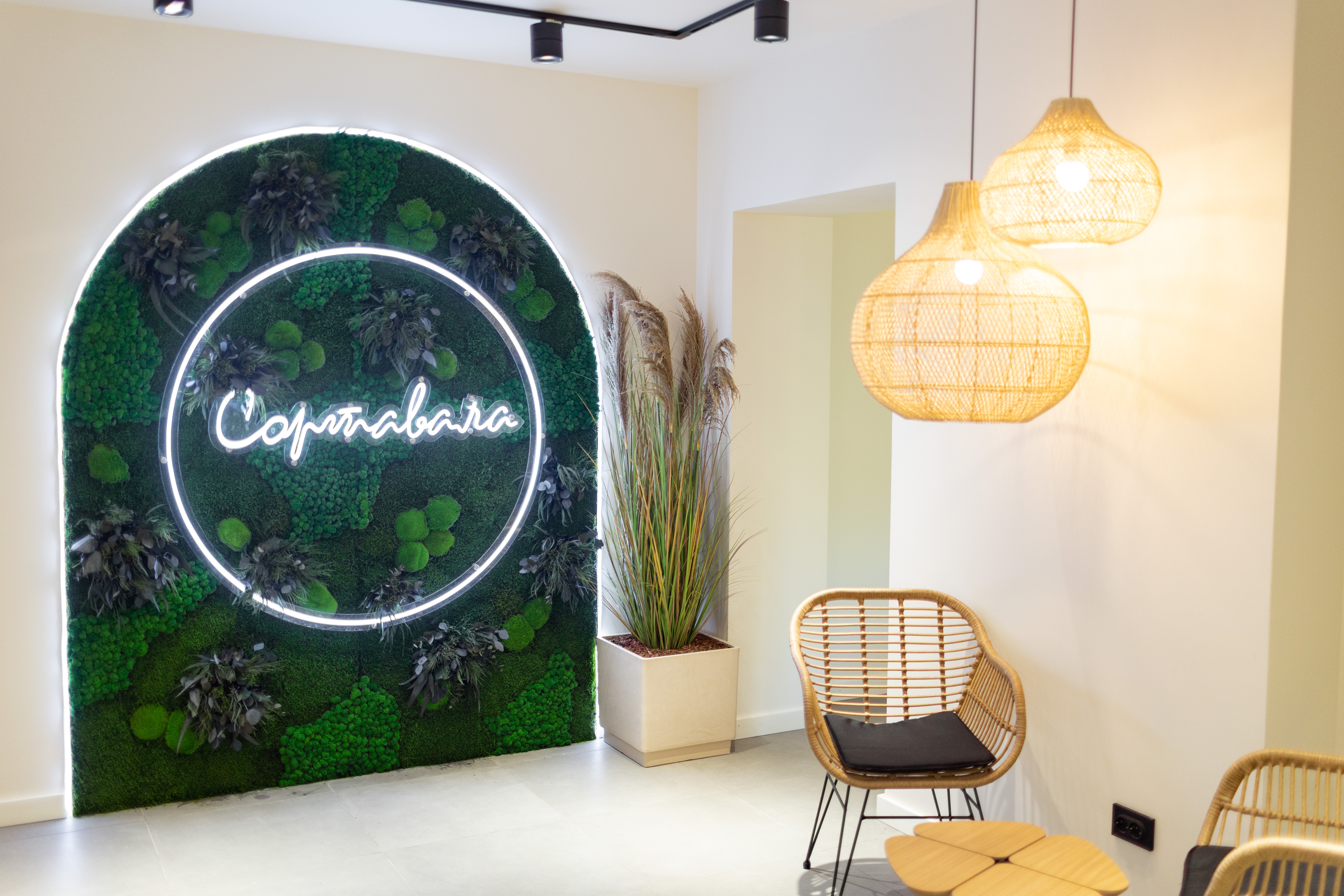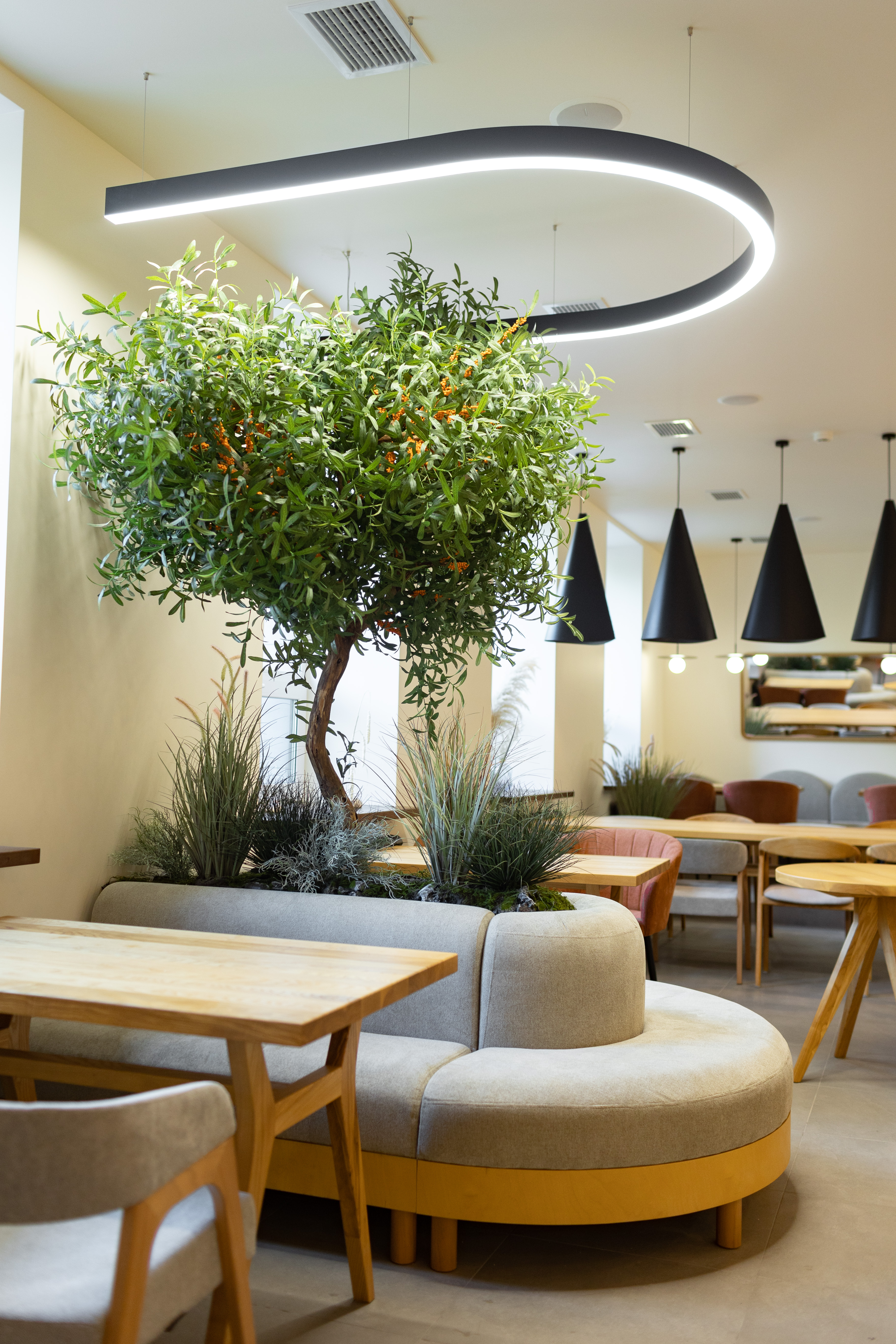 Согласованная световая вывеска на фасаде здания.Возможность оборудования летней терассы.