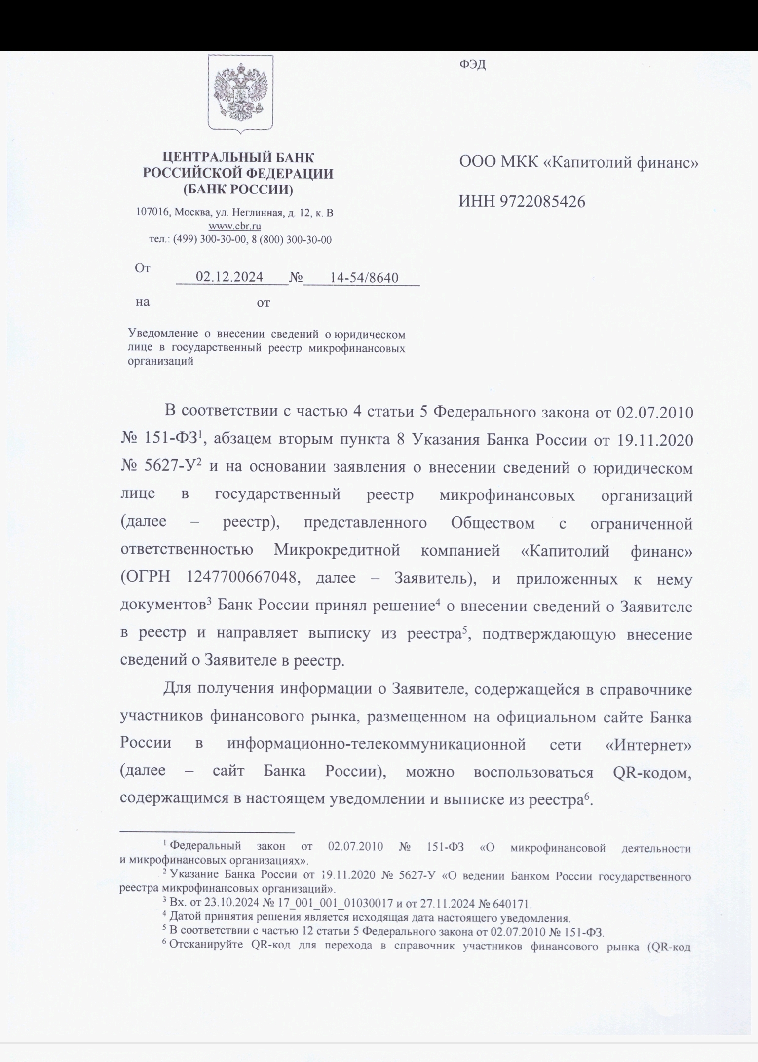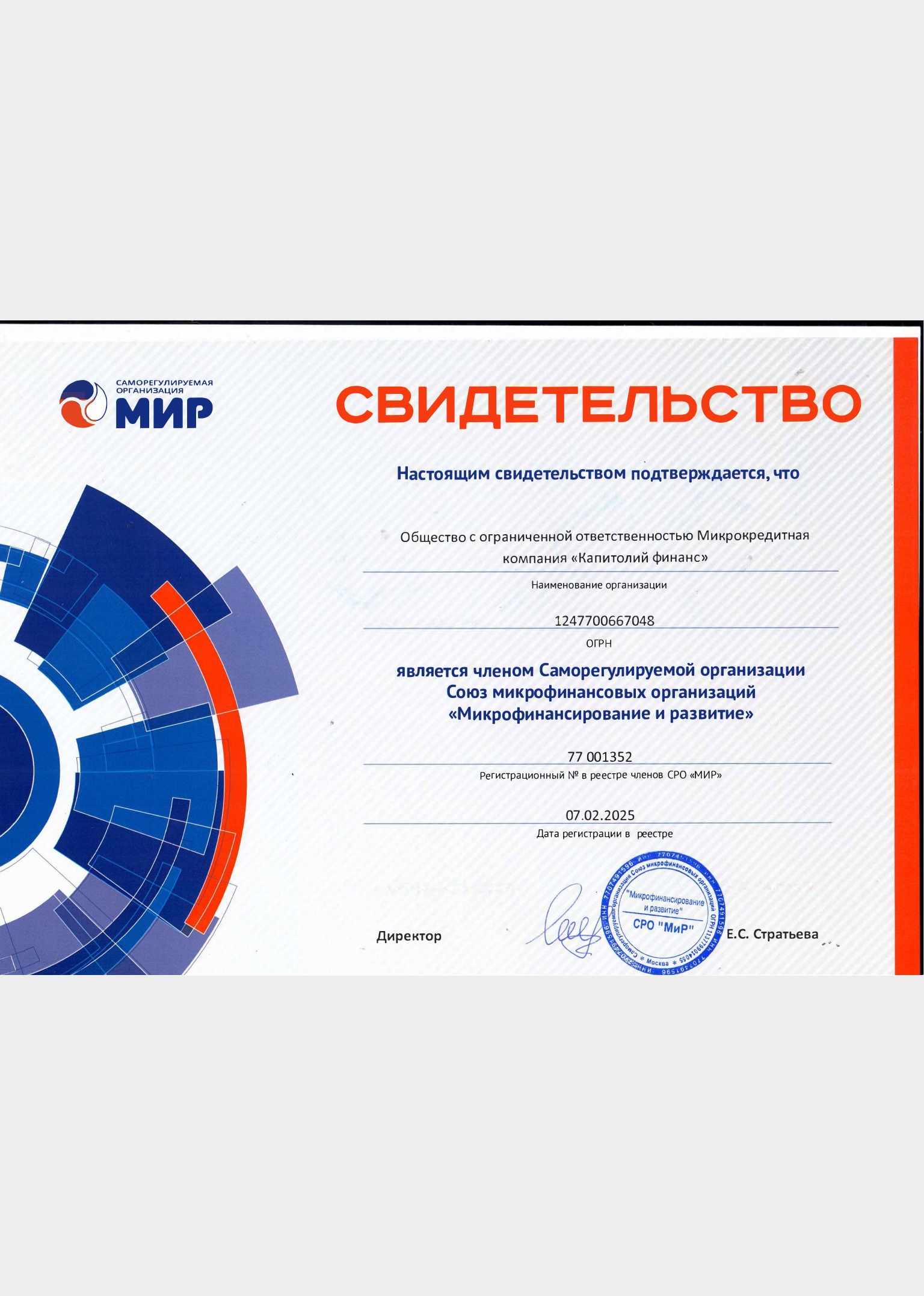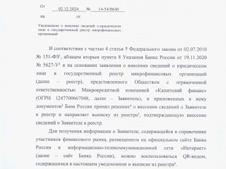 Компания соответствует требованиям для ведения деятельности в сфере микрофинансирования.