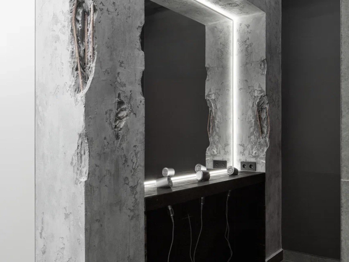 Ресепшен: Зона встречи гостей выполнена в брутальном металлическом решении, подчеркивающем характер и философию клуба.