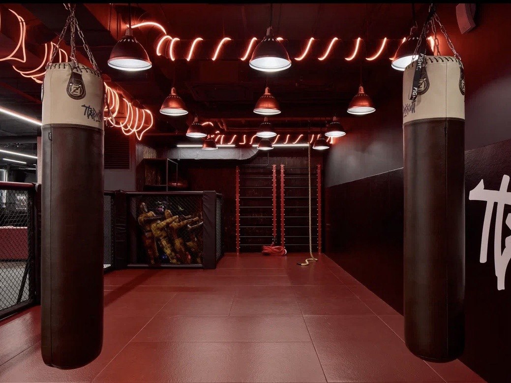 Тренировочная зона (укомплектована мешками из натуральной кожи премиум-класса Ultimatum Boxing, борцовскими манекенами Filipov Dynasty, водоналивной грушей Aqua Training Bag, подушками и специализированной платформой для пневмогруши).