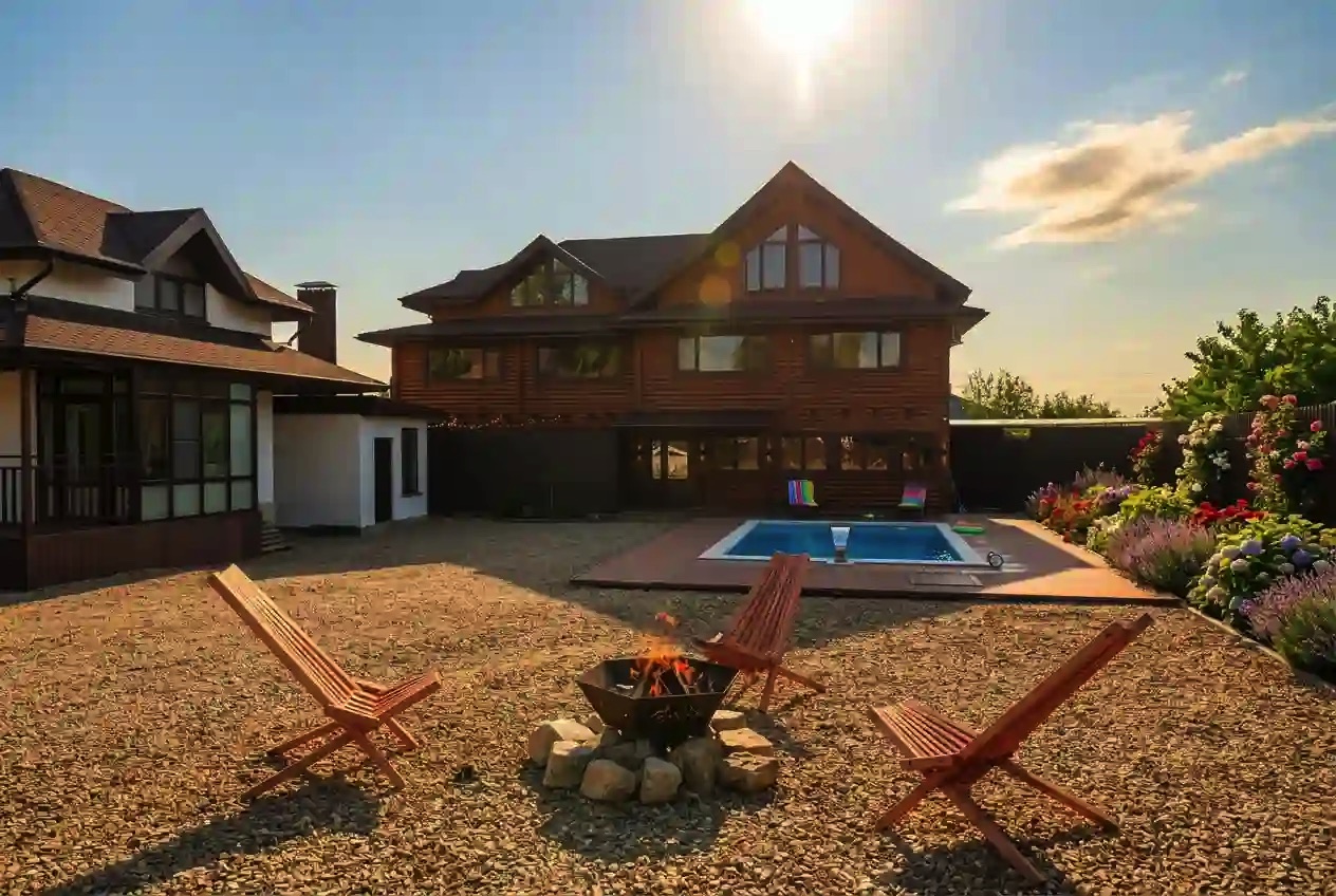 600 кв. м: Просторное здание с баней и гостевым домиком.