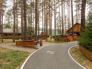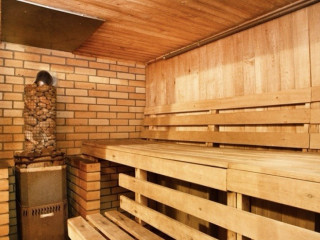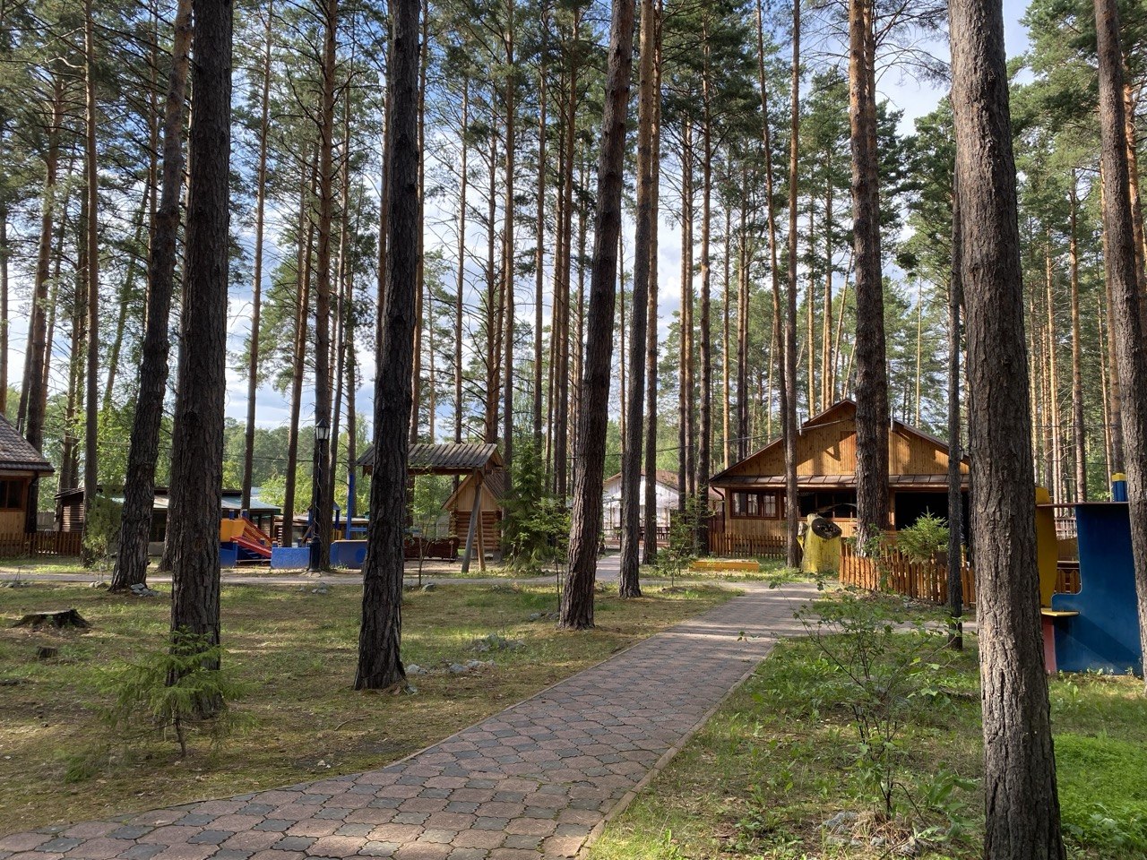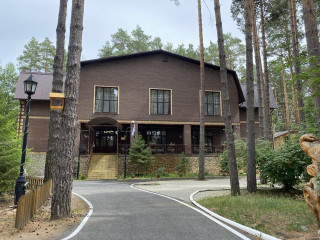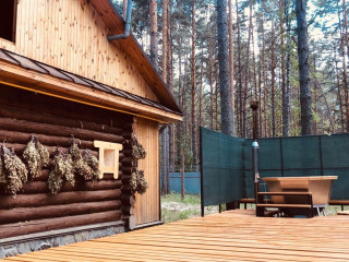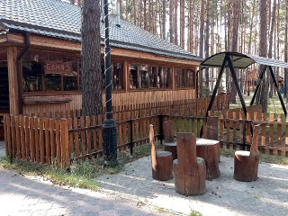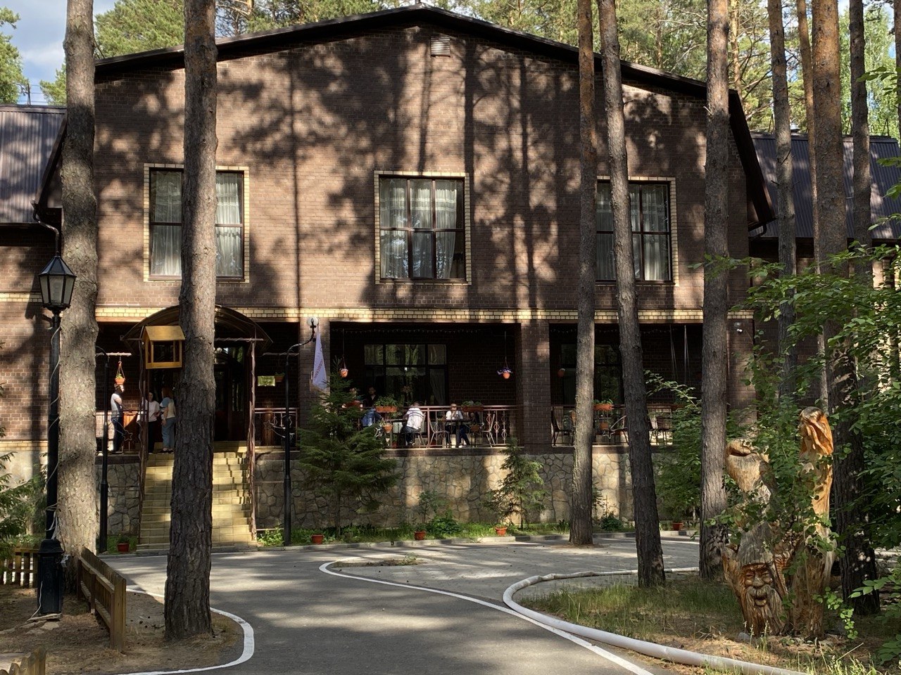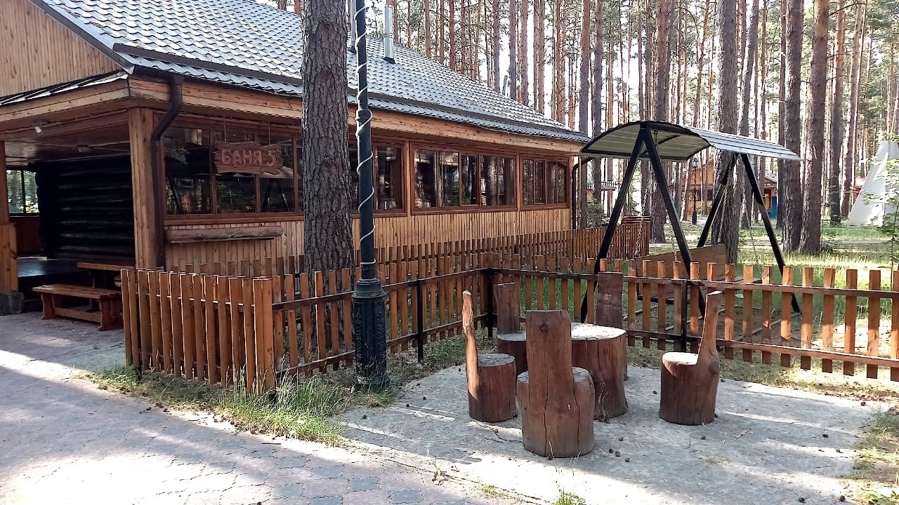 Банно-ресторанный комплекс расположен в сосновом бору.