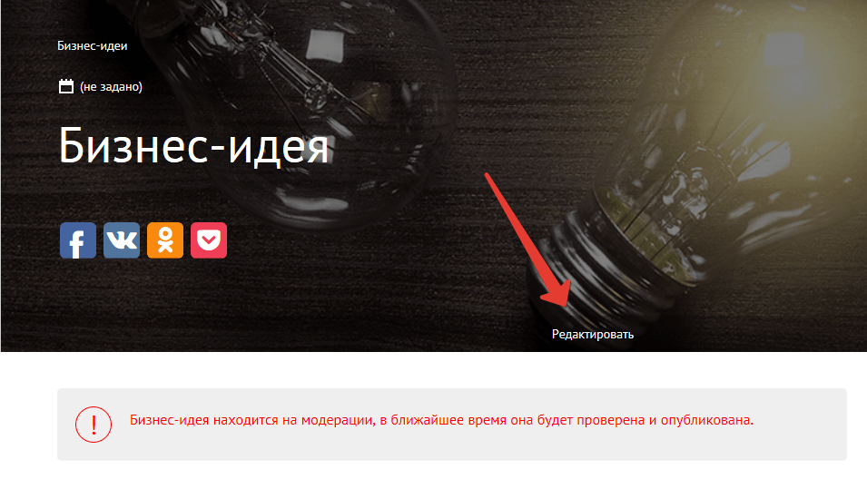 Нажмите кнопку сохранить, и ваша бизнес-идея будет отправлена на модерацию.