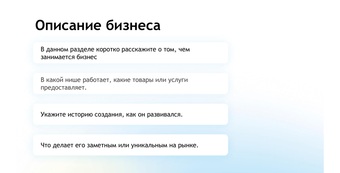 - Описание бизнеса