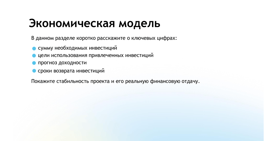 Инвестор первым делом изучает финансовую часть, поэтому проект обязательно должен содержать: