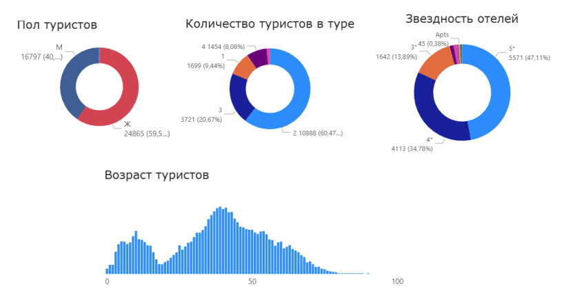 - 81% выбирают отели категории 4* и 5* — это сегмент среднего и высокого ценового уровня.