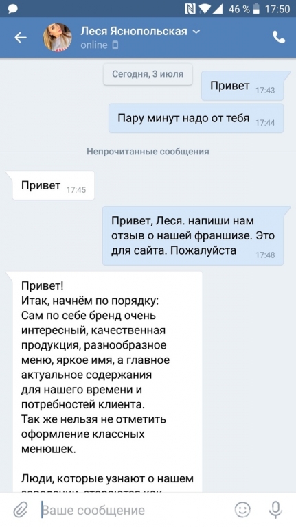 В плане организации и помощи мы не пожалели, что выбрали именно эту франшизу, т.к. все максимально на высшем уровне. Было много вопросов, так как сталкиваемся с этим впервые, но как оказалось, не стоило переживать, ведь нам во всем помогали, отвечали на все интересующие нас вопросы. Помогли в подборе персонала, так же помогли и с обучением. Полный бизнес план, будущие перспективы и постоянная поддержка и обновление сезонного меню.