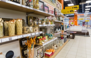 Весь товар «спрессован» в 1200 м2. За счет приемов мерчендайзинга, прокачивания экспертности, товаров собственных торговых марок, электронных терминалов и интерьерных зон, у покупателя нет сомнения в исчерпывающем ассортименте. И это действительно так.