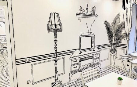 Для гостей создается визуальная иллюзия – реальные объекты нарисованы, а нарисованные объекты реальны. Дизайн запатентован на территории Российской Федерации.