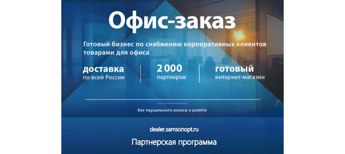 Сотрудничая с нами, Вы сможете начать перспективный бизнес и стать крупным дистрибьютором канцтоваров, офисной мебели и товаров для дома в своем регионе. Мы помогаем нашим партнерам быстро развиваться в сфере обслуживания корпоративных покупателей.