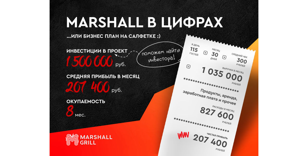 Узнайте, сколько вы сможете зарабатывать с франшизой MARSHALL GRILL