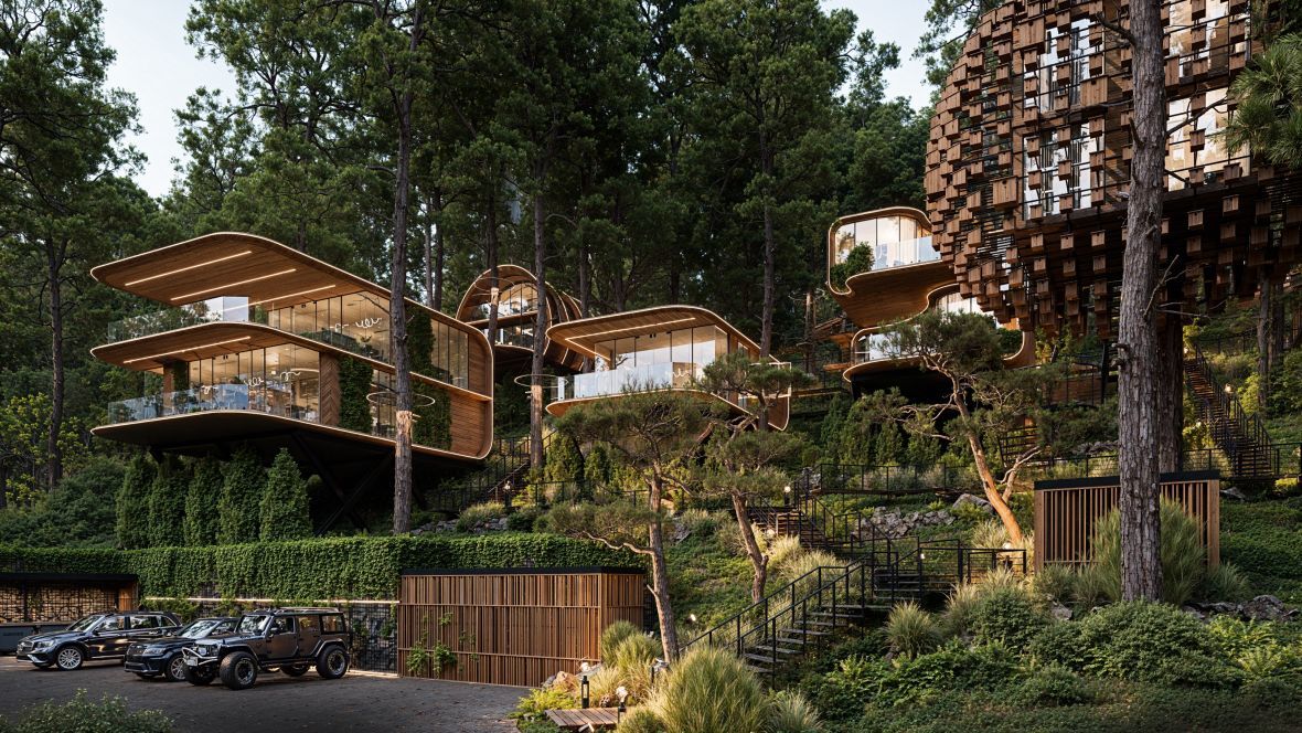 Украшением и визитной карточкой комплекса, несомненно, станут видовые характеристики из каждого номера отеля, площадки для досуга и объединения гостей, арт-пространства для прогулок и отдыха, уникальная архитектура