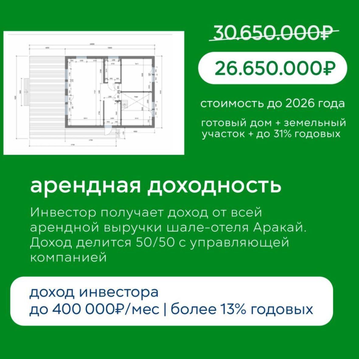 Стоимость юнита (земельный участок и дом) - 26 650 000₽