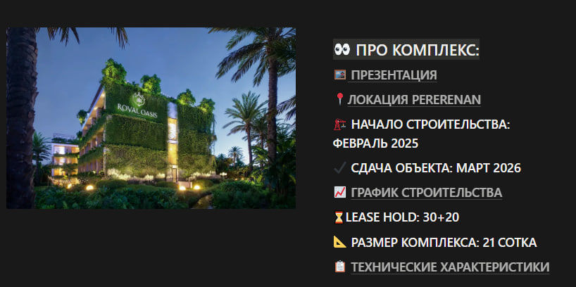 О проекте ROYAL OASIS COLLECTION и перспективы