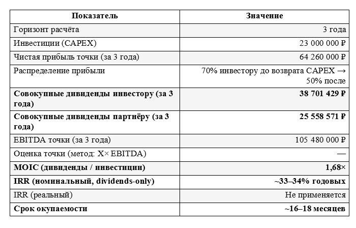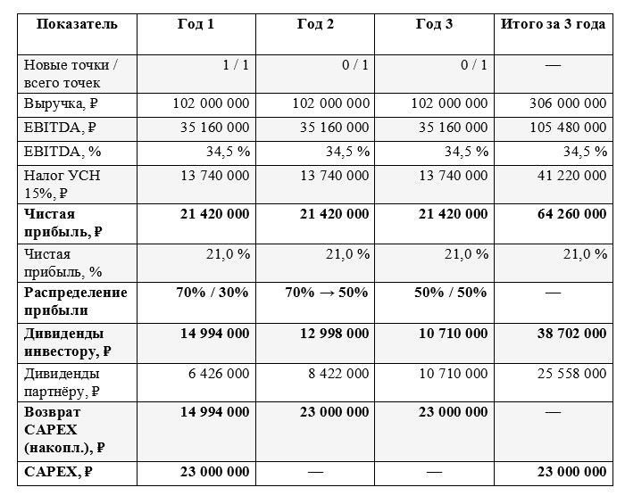 Формат изначально спроектирован под сетевое масштабирование: компактные точки, стандартизированное производство, быстрый ввод персонала и повторяемая экономика при тиражировании.