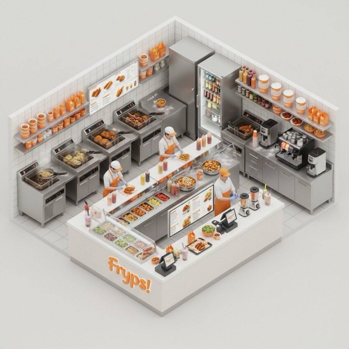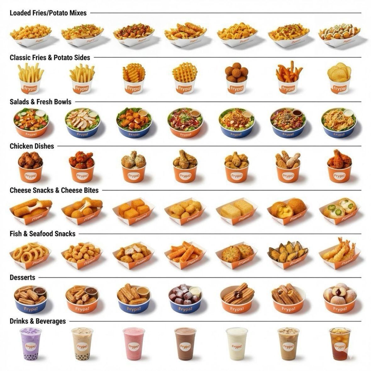Fryps! (Fry Food) — первая в России специализированная fry-first сеть быстрого питания, в которой фритюрные продукты (картофель фри, курица, снеки) являются ядром меню и юнит-экономики, а не дополнительной категорией.
