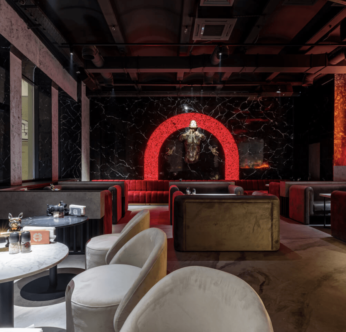 Формат — премиальное пространство 300–400 м²: кальяны, кухня, бар, алкоголь, DJ-программы и VIP-комнаты. Модель основана на высокой маржинальности ключевых категорий (кальяны и напитки) и повторных визитах гостей.