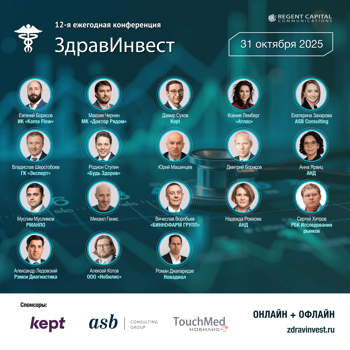 XII ежегодная конференция «Инвестиции в здравоохранение» — ключевое событие для инвесторов, медицинских операторов и лидеров частной медицины. Мероприятие традиционно собирает банки, фонды прямых и венчурных инвестиций, сети клиник, лаборатории, технологические компании и инвестиционно-промышленные группы.